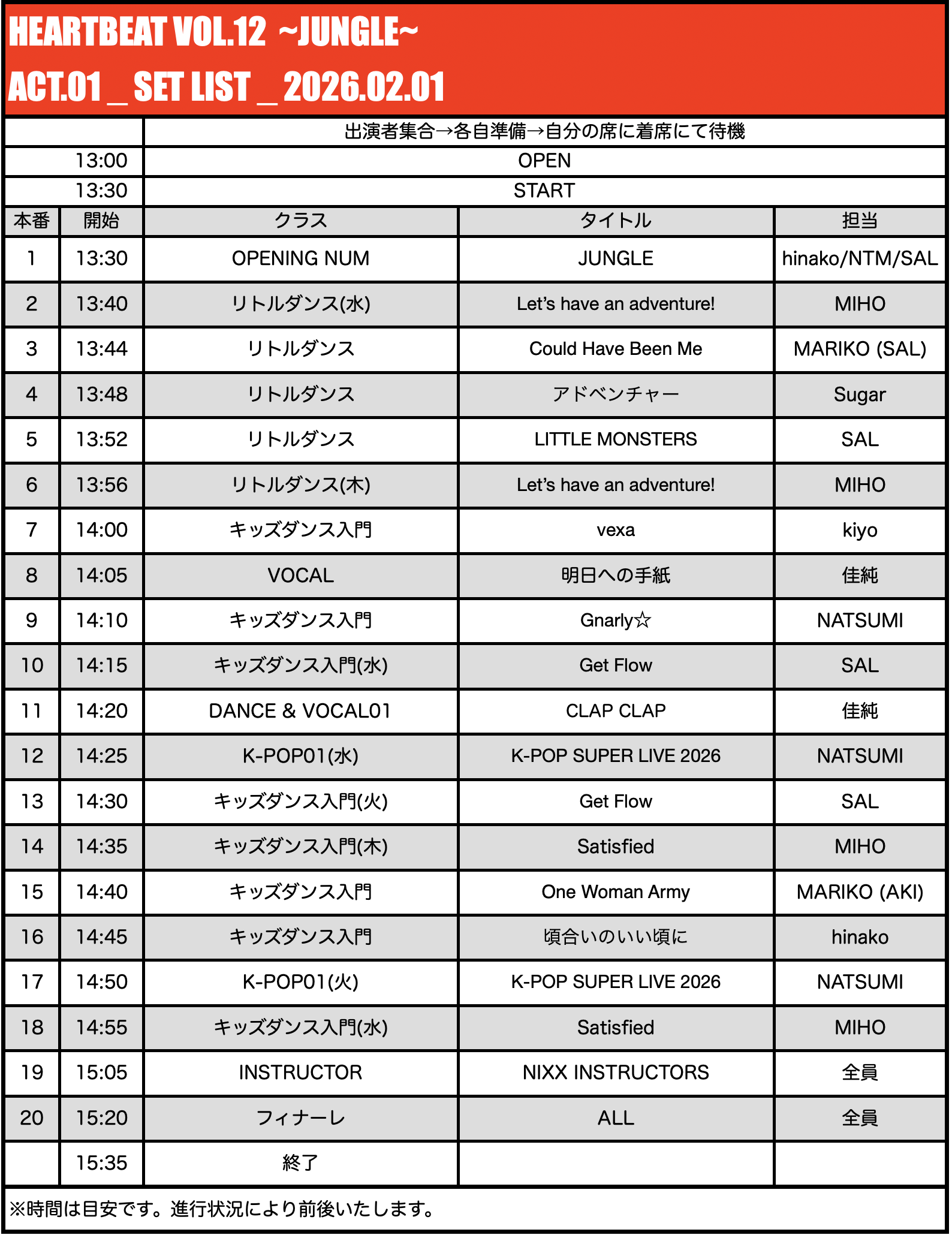 この度は、お忙しい時期にSTUDIO NIXX HEARTBEAT
